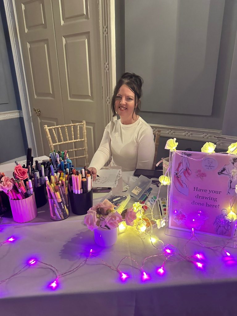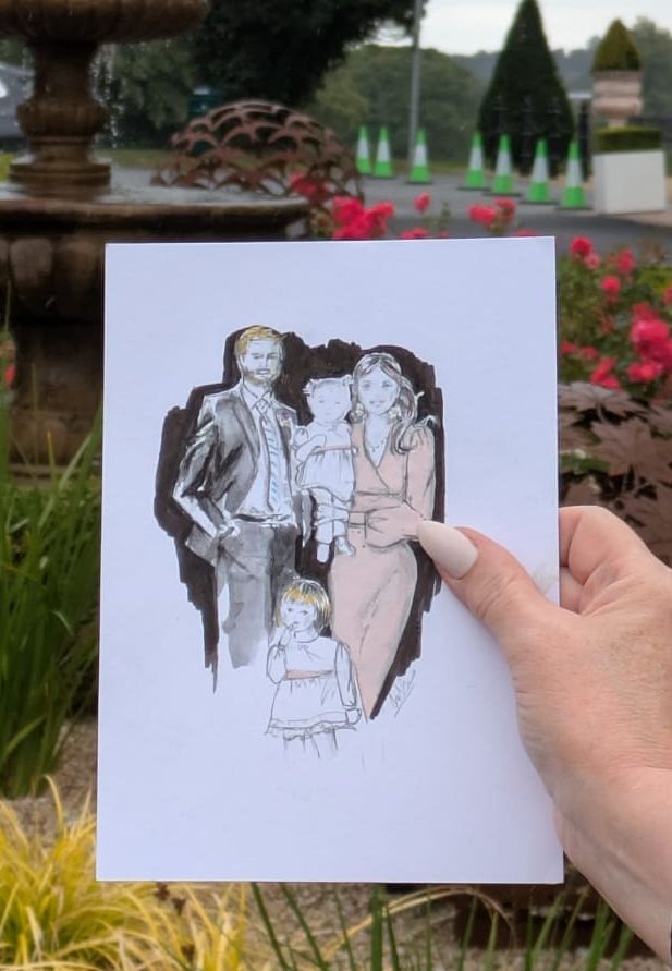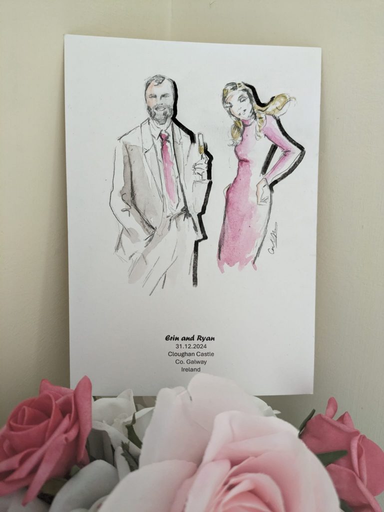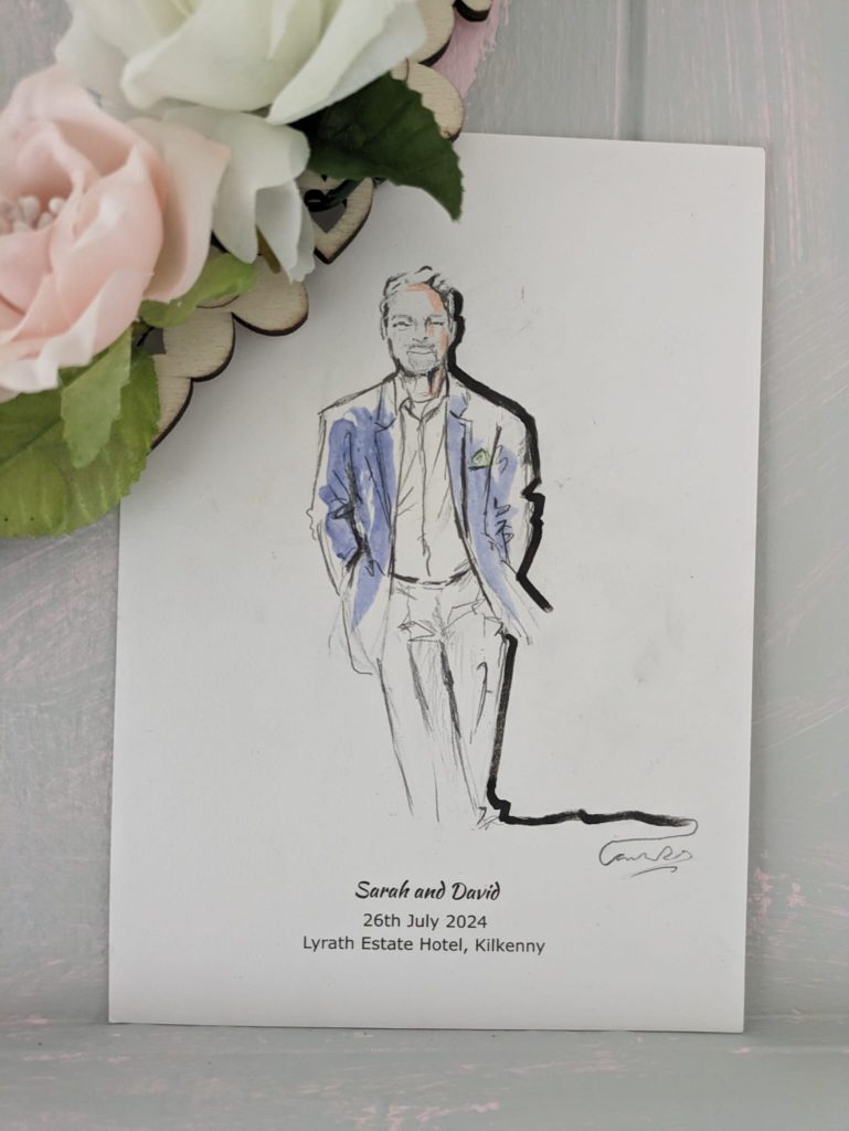 I travel to your venue within Ireland drawing personalised illustrations of your guests on your special day.