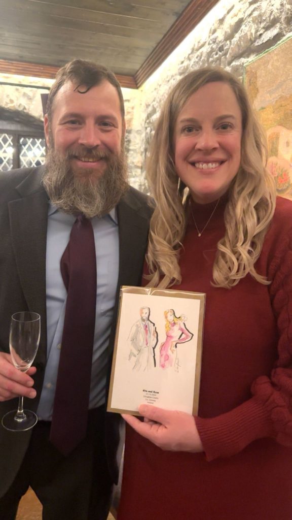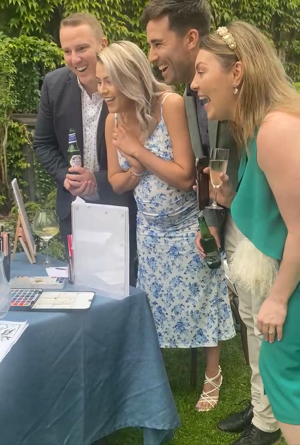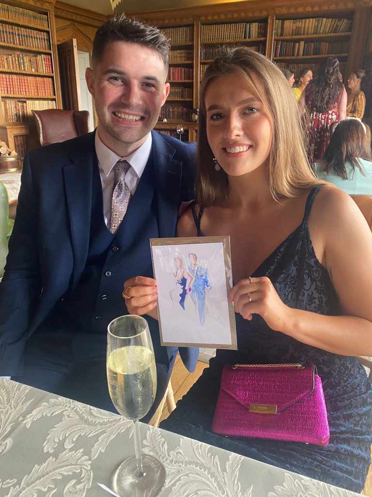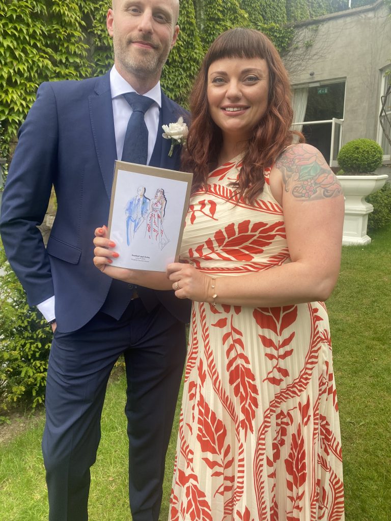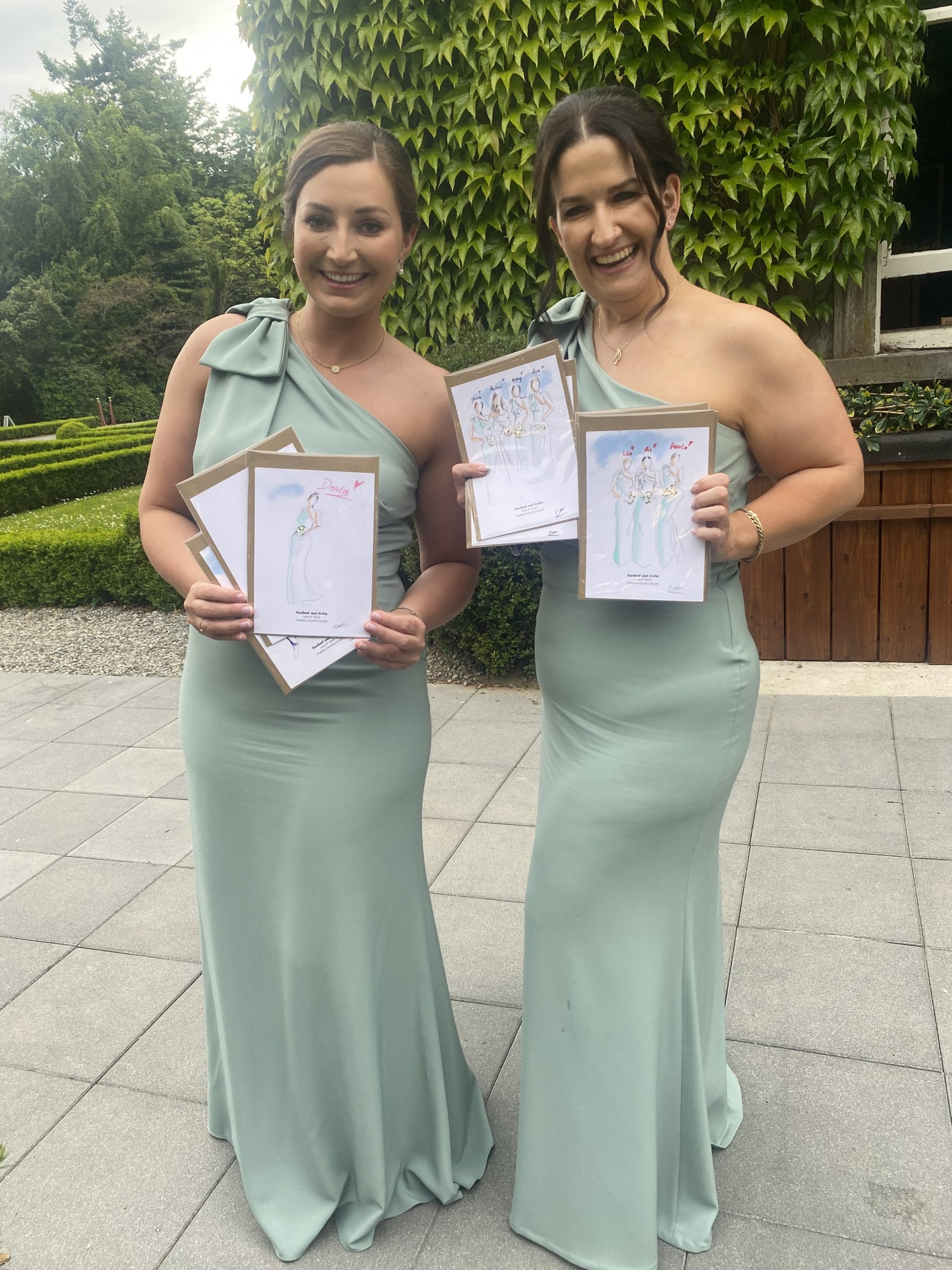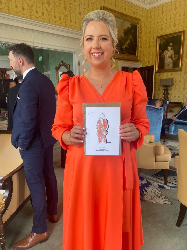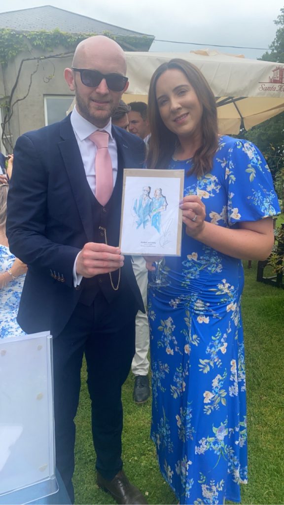 “Our guests absolutely loved their personalised illustrations, many of whom have framed their keepsakes! Carole has a unique talent and brought big smiles to our guests. Thank You for being part of our special day and helping us create amazing memories!” – Rachael & Colm, Tinakilly Country House, Co. Wicklow