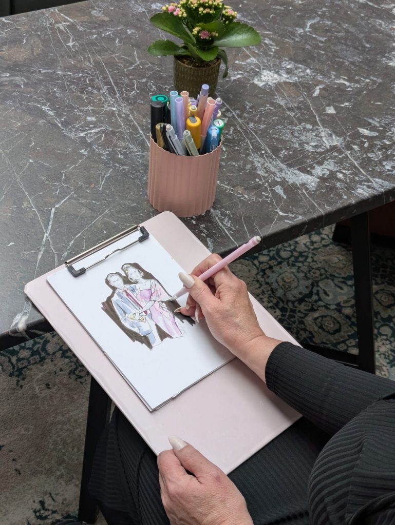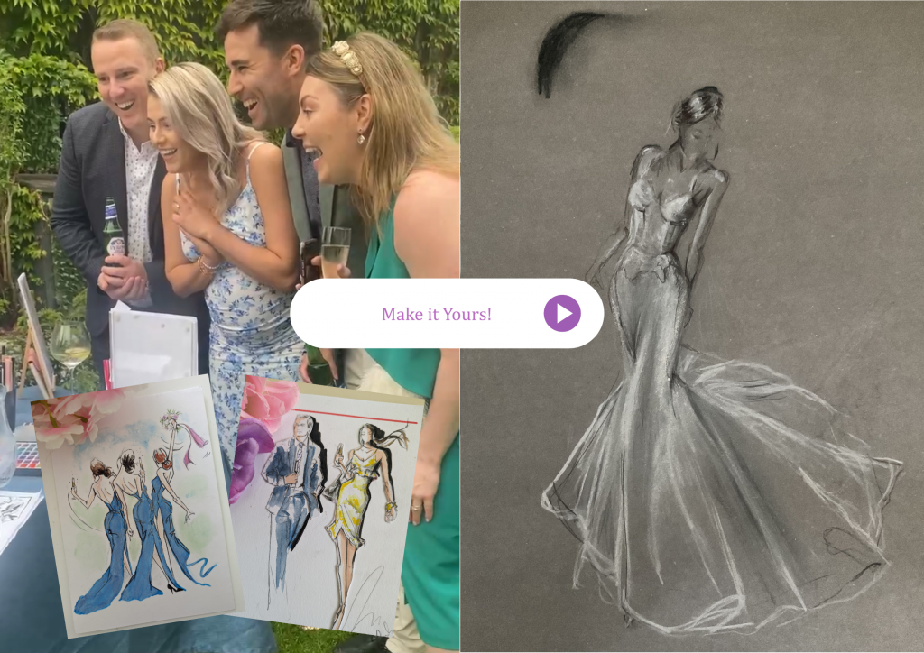 I love making everyone feel comfortable and relaxed as I draw and the part I always love is when your guests see themselves transformed into fashion illustrations!