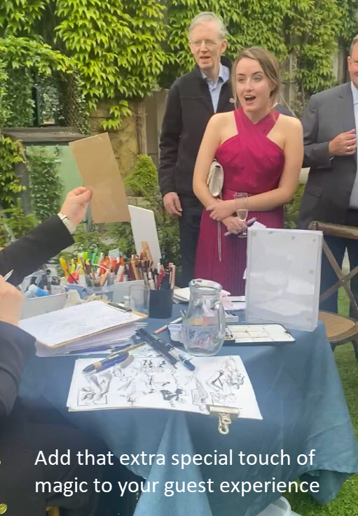 5 hours on the spot live illustration at your chosen venue throughout the drinks reception and evening reception.